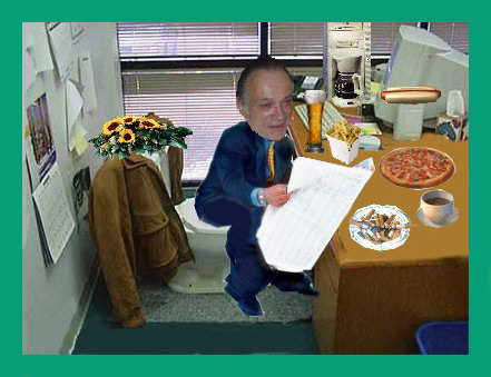 aber ein geniales Büro hat er, das muß man ihm lassen, so einzigartig, überaus praktisch und zweckmäßig eingerichtet.