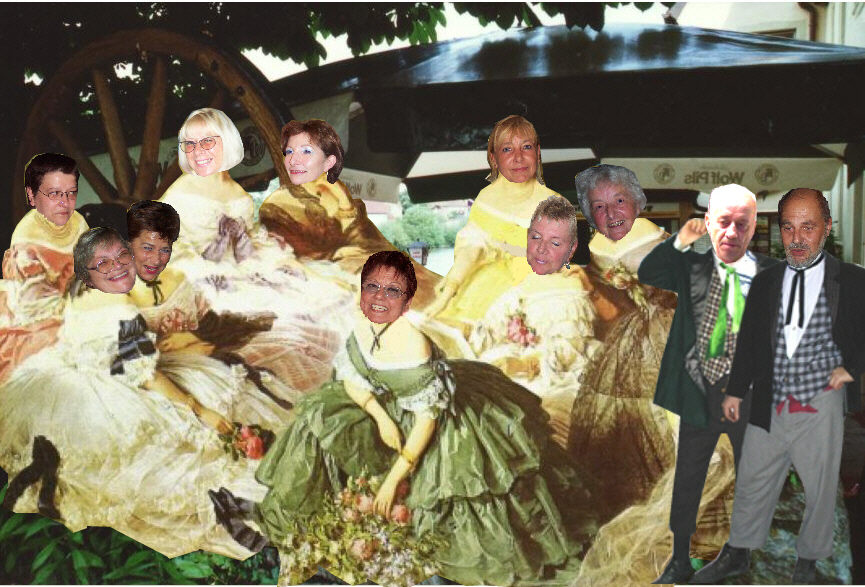 Klar, daß einige Faule dabei waren, die lieber im Biergarten saßen. Dort entstand folgendes Gruppenbild.